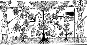 А там, где вершина Мирового Древа поднимается над седьмым небом, в "хлябях небесных" есть остров. Остров этот называли "ирием" или "вирием". Некоторые ученые полагают, что от него происходит теперешнее слово "рай", так прочно связанное в нашей жизни с христианством. А еще ирий называли островом Буяном. Этот остров известен нам по многочисленным сказкам. И на том острове живут прародители всех птиц и зверей: "старший волк", "старший олень" и т.д.