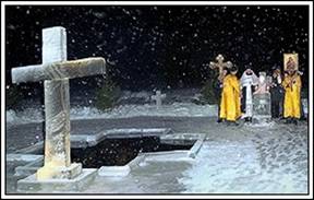 Один из больших зимних праздников - день Богоявления или Крещения Господня. “Крещение” (от слова “крест”) в старославянском и русском текстах Священного Писания соответствует греческому “баптисма” (“погружение”). Ритуальное омовение знают многие народы. Вода - универсальный символ жизни, но одновременно - и смерти: в пучинах вод таится погибель. Обряд погружения в воды озер и источников становится священным актом приобщения к чередованию жизни и смерти, к постоянному обновлению природы.