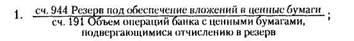 Особого внимания заслуживает анализ формирования и использования резервов под обеспечение вложений в ценные бумаги. Цель анализа — выявить степень покрытия рисков по операциям банка с ценными бумагами. Задача — определить достаточность резерва, покрытие рисков. Источники анализа: лицевые счета по сч. 944 и забалансовому сч. 9971, а также дан-