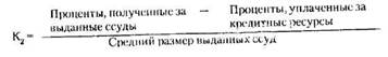 К2 характеризует прибыльность кредитных операций. Сравнение его с K1 позволяет сравнить прибыльность этой сферы деятельности банка со средней прибыльностью активов, приносящих доход. Сравнение К1 и К2 с Мд (достаточная маржа) позволяет оценить, как фактическая прибыльность активных и кредитных операций отличается от минимально необходимого уровня.