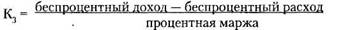 (К2). Коэффициент процентной маржи значительно превышал мировые стандарты (3 — 4%), так как перекрывал высокие темпы инфляции. Падение коэффициента объяснялось отставанием роста полученных процентов от роста уплаченных процентов, т.е. удорожанием ресурсов (см. табл. 10.4). Рост К.2 был связан с увеличением дохода от услуг банка некредитного характера (см. табл. 10.1), а также нестабильных источников дохода (см. табл. 10.4). Фактическое значение К, превышало нормативный уровень по мировым стандартам (1%). Ликвидация "бремени" в 1995 г. позволила К3 достичь 2,3%. Однако значение коэффициента намного ниже мировых стандартов (48% — 67%). Таким образом, основная задача банка в области управления доходами заключается в принятии мер, обеспечивающих удешевление ресурсов (например, за счет расширения депозитной базы, т.е. привлечения вкладов), а также в дальнейшем развитии услуг некредитного характера.