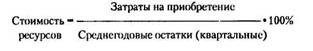 Стоимость ресурсов выражается в процентах и определяется по формуле: