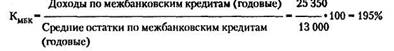 Определение удельного веса привлеченных просроченных межбанковских кредитов к общей их сумме даст представление о платежеспособности данного банка. То же относится и к пролонгированным кредитам.