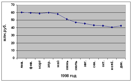 Валюта баланса в первом полугодии 1998 года характеризовалась достаточно незначительным динамичным снижением в первые шесть месяцев и резким падением (17,7%) с августа месяца этого года.
