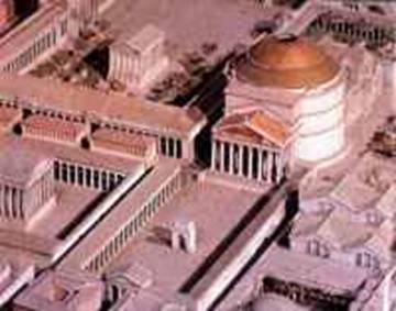 Однако самым знаменитым и выдающимся сооружением эпохи Андриана является Пантеон. От первоначальной постройки Агриппы остался передний портик (паперть) с шестнадцатью гранитными колоннами в три ряда (8-4-4), в глубине которого в правой и левой нише стояли статуи Августа и Агриппы.