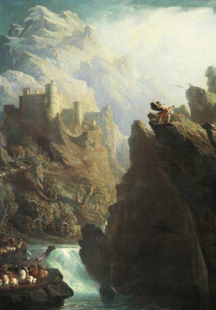 Мартин Джон (Martin, John) (1789-1854 гг.), британский художник-романтик и гравёр, работавший в манере меццо-тинто; прославился изображением сцен катастроф. Его полотна заполнены крошечными фигурками среди грандиозных архитектурных сооружений. Мартин использовал меццо-тинто не только для репродуцирования своих картин, но изредка для создания оригинальных композиций, главным образом иллюстраций к Библии и "Потерянному раю" Мильтона, где особенно проявились его пылкое воображение и стремление к монументальности.