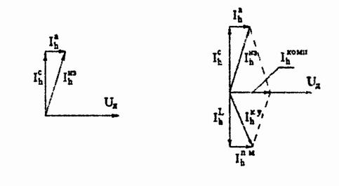 Векторная диаграмма токов при однофазном прикосновении к сети с компенсирующим устройством |