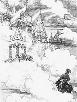 Царь-девица живет в сказочном золотом дворце, этот мотив тоже взят из народного фольклора, точнее периода языческих поверий о дворце бога – Ярилы.