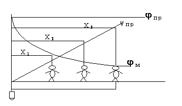 Распределение потенциала по поверхности земли осуществляется по закону гиперболы.