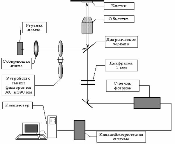 Рисунок 4. Принципиальная схема экспериментальной установки для двухволнового измерения кальция.