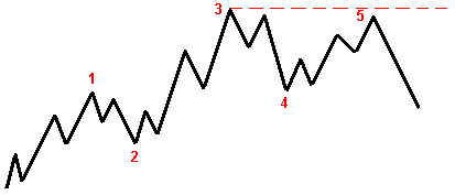 Проявляется в заключительной пятой волне. Пятая волна разбивается на 5 волн, но последняя заключительная так и не достигает вершины волны 3.