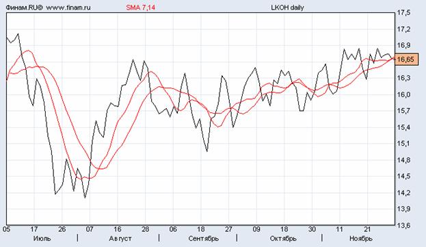 Поскольку пересечения ценою кривой МА дают четкую информацию на покупку или продажу, это способствует избавлению от субъективизма при построении и интерпретации трендовых линий.
