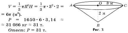 Задача. Авиационная бомба среднего калибра дает при взрыве воронку диаметром 6 м и глубиной 2 м. Какое количество земли (по массе) выбрасывает эта бомба, если 1 м3 земли имеет массу 1650 кг? Решение: