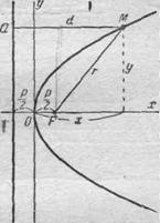 число положительное; это следует из того, что М (х; у) должна находиться с той стороны от директрисы, где находится фокус, т. е. должно быть