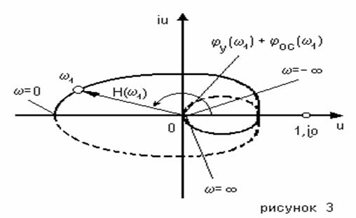 Обходу контура на рисунке 1 в положительном направлении (против часовой стрелки) соответствует обход годографа Н при изменении частоты от ¥ до -¥, т.е. также против часовой стрелки (см. рисунок 3).