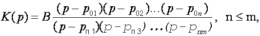 которое при ½p½®¥можно представить в виде (под В подразумевается постоянный коэффициент, а p0i и pпi - соответственно нули и полюсы функции К(р)).