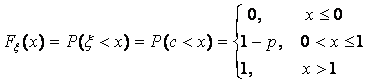 Определение 27.Функцией распределения случайной величины ξ называется функция Fξ(x) : R ® [0, 1], при каждом x Î R равная Fξ(x) = P(ξ < x) = P{ω: ξ(ω) < x}