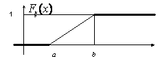 Пример 24. Будем говорить, что случайная величина ξ имеет равномерное распределение на отрезке [a, b] и писать ξ Î Ua,b (“ uniform”), если ξ — координата точки, брошенной наудачу на отрезок [a, b] числовой прямой. Это распределение можно задать и с помощью функции распределения: