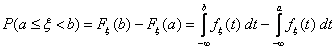 P(а £ ξ < b) = P(а < ξ < b) = P(а £ ξ £ b) = P(а < ξ £ b) = Fξ(a) - Fξ(b)