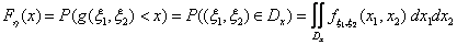 Теорема 25. Пусть хÎ R, и область Dx Î R2 состоит из точек (x1 x2 ) таких, что g (x1 x2 ) < x. Тогда случайная величина η = g(ξ1 , ξ2). имеет функцию распределения