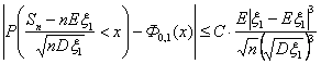 в) как показывают расчеты, можно смело брать в качестве С число 0,4 — даже для слагаемых с распределением Бернулли, особенно при малых n, когда и это значение постоянной оказывается слишком грубой оценкой.