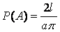Пример 10. На плоскости начерчены параллельные прямые, находящиеся друг от друга на расстоянии 2a. На плоскость наудачу брошена игла длины 2l < 2a. Какова вероятность того, что игла пересечет одну из прямых?