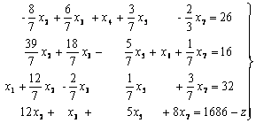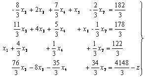 , х2=0, х3=0, х4=0, а из последнего уравнения системы (11) получается выражение функции цели через свободные переменные: