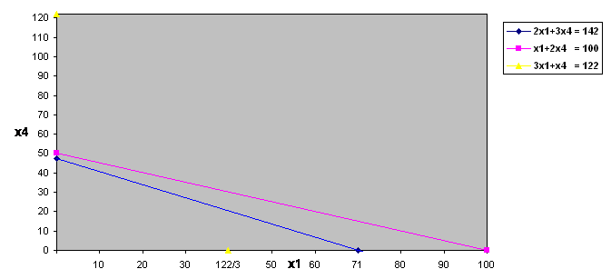 Первые три уравнения этой системы представляют некоторый предпочитаемый эквивалент системы уравнений (5) и определяют базисное неотрицательное решение (10) и производственную программу х1=