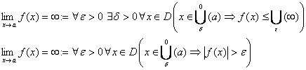 Если в общем определении предела через окрестности положить в качестве А бесконечно удаленную точку, то получим определение бесконечного предела.