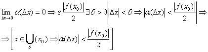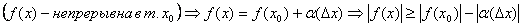 непрерывна в точке х0 и ее значение в этой точке отлично от нуля, то существует целая окрестность х0 , в которой ф-ия не равна нулю и сохраняет знак f(x0)