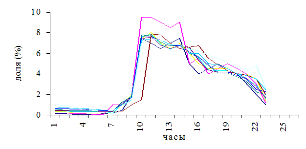 Рисунок 3 - Распределение трафика в зависимости от времени суток