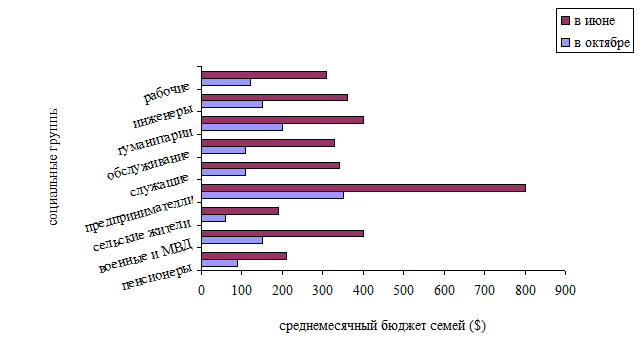 Рисунок 5 - Изменение вследствие кризиса среднемесячного бюджета семей различных социальных групп