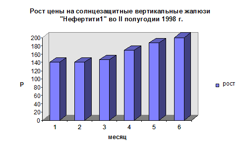 Спрогнозируемрост (падение) цены на I полугодие 1999 г. на вертикальные жалюзи «Нефертити 1» . Сначала покажем тенденцию роста цены во II полугодии на данные жалюзи. Для этого приведем выборочные данные из прайс - листов за II полугодие 1998г. в таблице 7.
