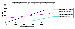 Методика ценообразования с расчетом на получение целевой прибыли основывается на графике безубыточности. На таком графике представлены общие издержки и ожидаемые общие поступления при разных уровнях объема продаж.