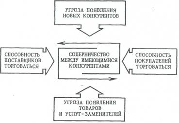 Хотя на каждом рынке характер конкуренции по-своему уникален, ее проявления на всех рынках имеют много общего, что при изучении сущности и интенсивности конкуренции позволяет использовать единое аналитическое пространство. Согласно М. Портеру, конкуренция на рынке — результирующая пяти названных ниже сил: