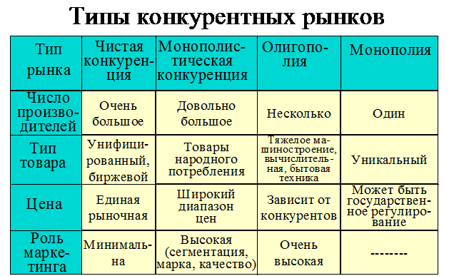 С позиции маркетинга интересны рынки монополистической конкуренции и олигополии.