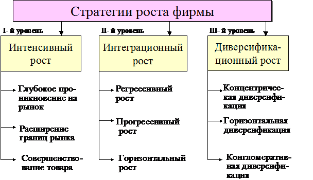 1. Интенсивный рост (анализ роста фирмы в нынешних масштабах деятельности):