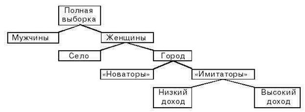 На рис. 2 представлена схема последовательных разбивок по методу AID (автоматического детектора взаимодействия), который получил широкое распространение в процедурах сегментации.