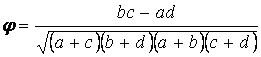 Коэффициент φ, это тот же коэффициент кореляции Пирсона, но эти данные не похожи на двумерное нормальное распределение, которое мы представляли при вычислении коэффициента Пирсона. Это рассматривается как большое неудобство статистиками.
