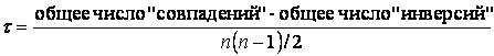P – сумма всех совпадений; Q – сумма всех инверсий;
