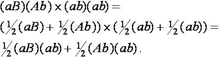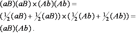 -частота гамет, у которых в первом локусе находится аллель A, а во втором - аллель b. Частоты генотипов в текущем поколении связаны с частотами гамет этого же поколения (до мейоза). Приведем примеры. Частота гомозиготного генотипа (AB)(AB) суть