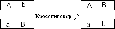 Благодаря кроссинговеру сцепленные гены могут передаваться потомству в сочетаниях, отличных от тех, которые были у родителей. В частности на рисунке родительская особь генотипа (AB)(ab) в результате кроссинговера породила гаметы (Ab) и (aB). Без кроссинговера мейоз привел бы к появлению гамет (AB) и (ab).