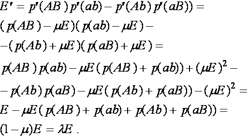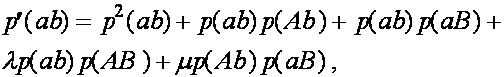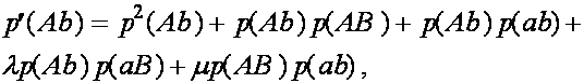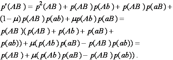 Совершенно аналогично исследуется изменение частот гамет (ab), (Ab), (aB):