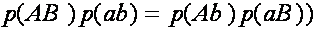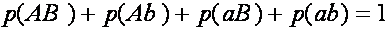 при мейозе дает гаметы (AB) и (Ab) (нас в данном случае интересуют гаметы (AB)). Совершенно аналогично, отражает вклад генотипа (AB)(aB) в образование гамет (AB). Четвертое слагаемое выписывается из следующих соображений. При условии, что кроссинговер не произошел (вероятность ), особь генотипа (AB)(ab) с вероятностью
