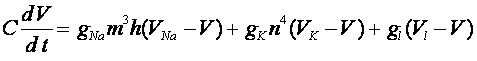 . В работах А. Ходжкина и А. Хаксли указан их конкретный вид. Функции весьма сложно устроены. Реально система уравнений допускает только численное исследование. Ограничимся рядом замечаний на качественном уровне, иллюстрирующих впечатления от численного исследования. Входящие в систему (6) -(9) функции подобраны так, что выполнен ряд свойств. Она имеет устойчивое состояние равновесия