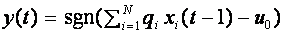 . В связи с этим, часто берут в качестве функции активации знак числа. Формула для выходного сигнала приобретает вид: