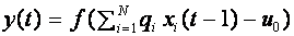 в (12) получила название функции активации. Часто рассматривают нейроны с другими функциями активации. Нулевое значение выходного сигнала означает, что в соответствующий момент времени нейрон не действует на другие нейроны (он как бы искючен из сети). Представляется разумным, что в любой момент времени