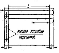 Рис. 4. Схема движения агрегата на внесении минеральных удобрений при длине гона, примерно равной запасу рабочего хода.