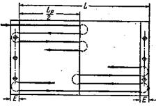 В процессе работы с разбрасывателями КСА-3 и 1-РМГ-4 следует стремиться к сохранению средних оборотов двигателя и достижению максимально возможной скорости движения. Транспортер включают в работу только при движении агрегата (автомобиля) вперед. В зависимости от длины гона и величины запаса рабочего хода агрегатов между заправками (Lp) возможны несколько вариантов работы агрегатов челночным способом. Когда длина гона небольшая, движение агрегатов осуществляется согласно схеме на рисунке 3. Если длина поля примерно равна запасу рабочего хода агрегата, его движение осуществляется по схеме, показанной на рисунке 4.
