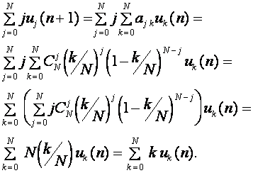 Отметим, что цепи Маркова, для которых выполнено данное соотношение , называются мартингалами. (Совершенно наивно интерпретировать (37), как то, что в среднем число аллелей сохраняется, т.к. один из аллелей вытесняется из популяции.)